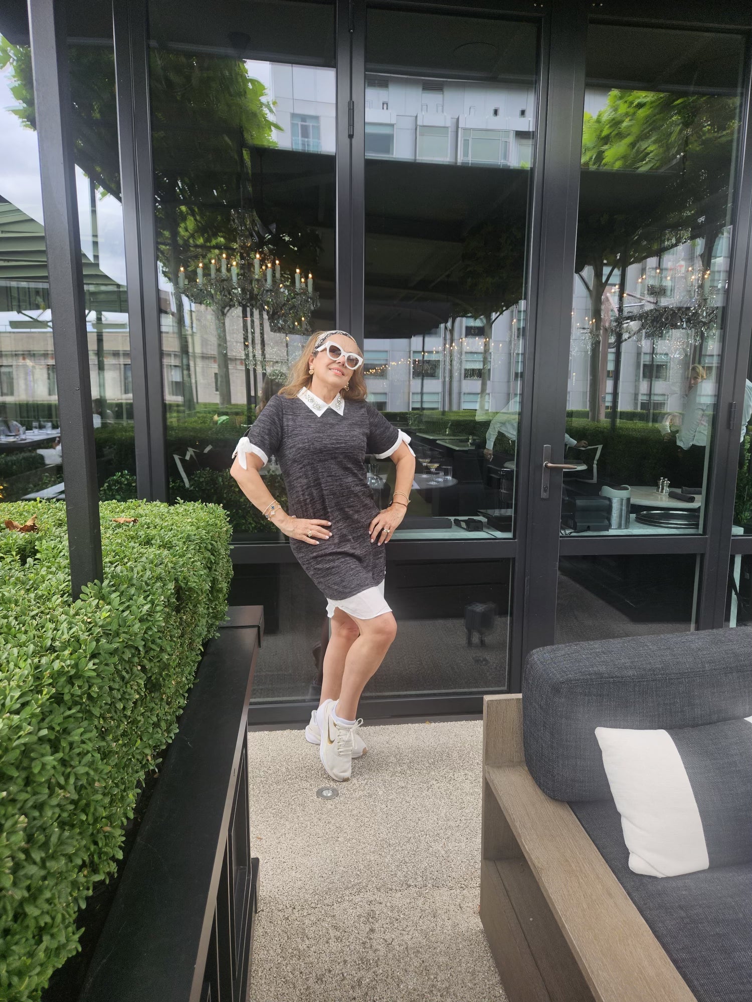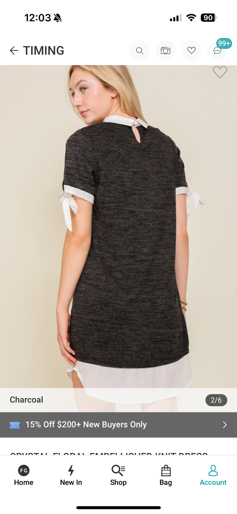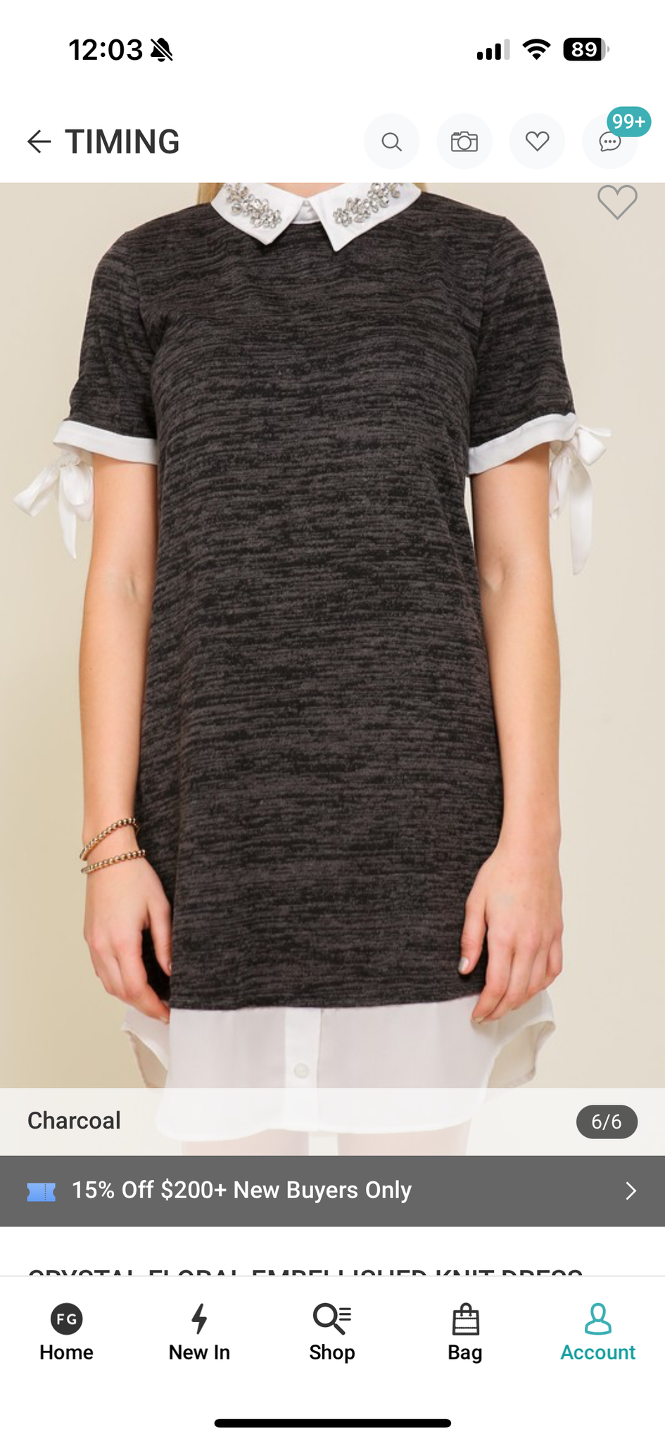 Our beautiful collar dress can be worn as a tunic as well. This beautiful Heather charcoal knit dress is perfect. It’s got a self tie sleeve detail and a Crystal floral embellished collar. It has a classic layer shirt with subtle pleading details and a neat waistband, creating a flattering shape. The dress finishes just above the knee and has a flattering short sleeve length it makes for the perfect, multi seasonal piece and its beautiful Peter Pan style collar. It’s a great multi seasonal piece its beautiful Peter Pan style collar is absolutely timeless fun for any occasion!