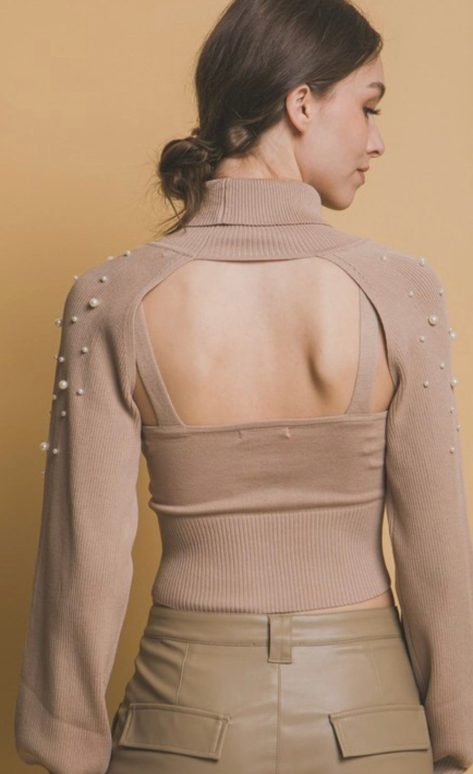 Our Knit Shrug and cami Set comes in the most divine shade of camel . It features subtle pearl details and it is a pull on style set. Pair with our pleated skirts or our classic dress pants for a fun, glam look.